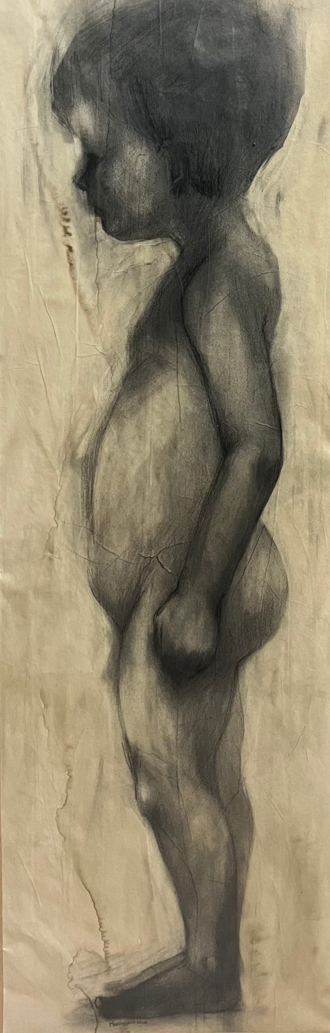 紙ににコーヒー、鉛筆 / 縦106.8cm× 横 39cm×厚み2.5cm(額込み)/ サインあり