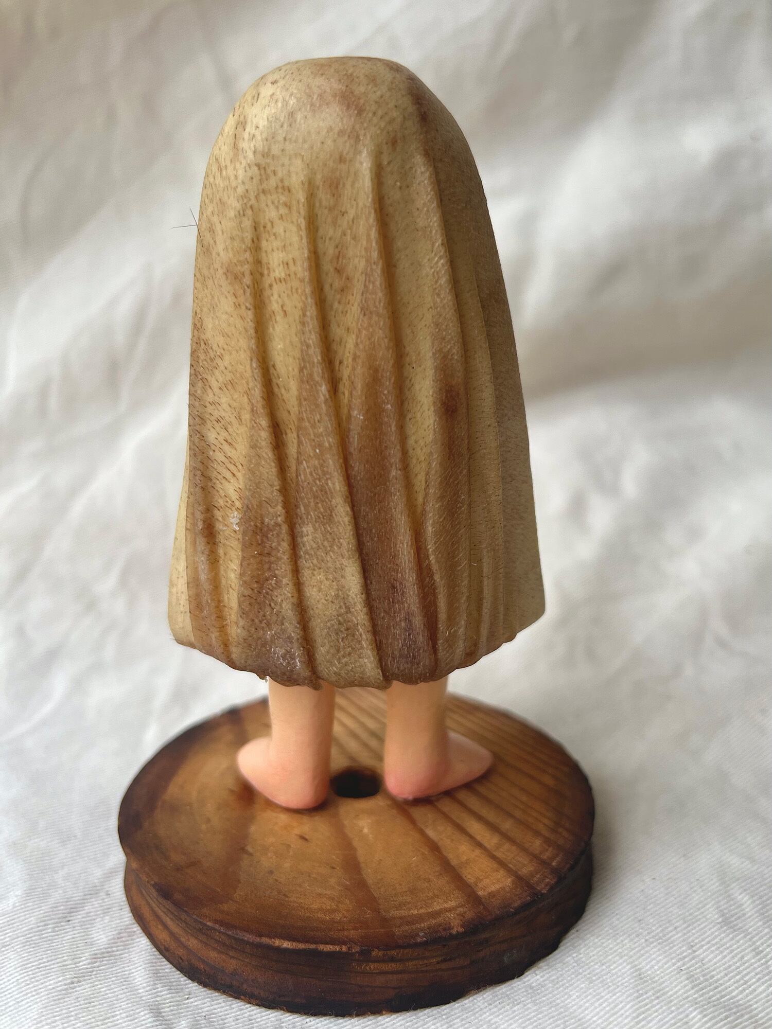 佐藤の制作したオバケにimocoさんがなめした革で包んでいます。