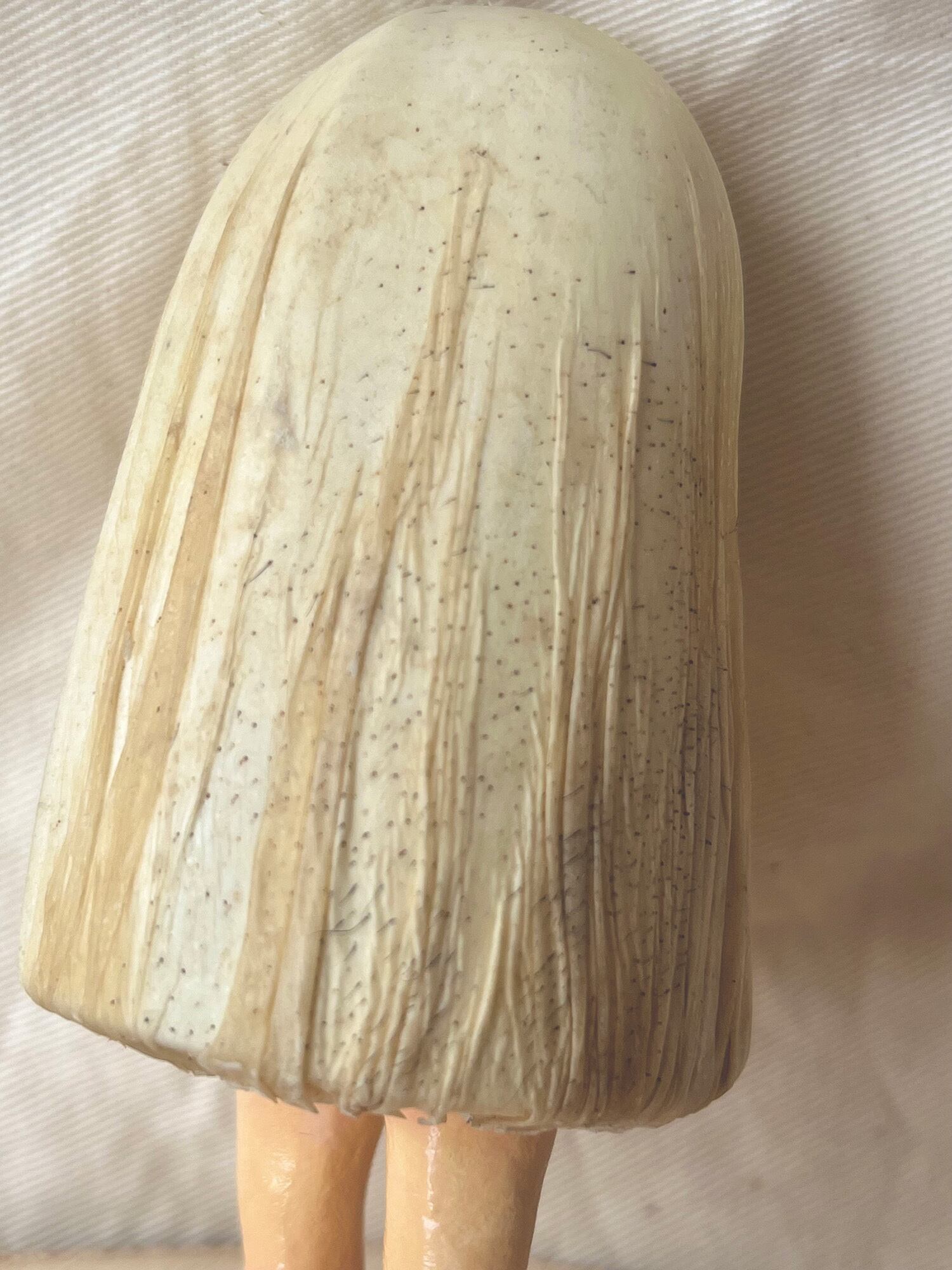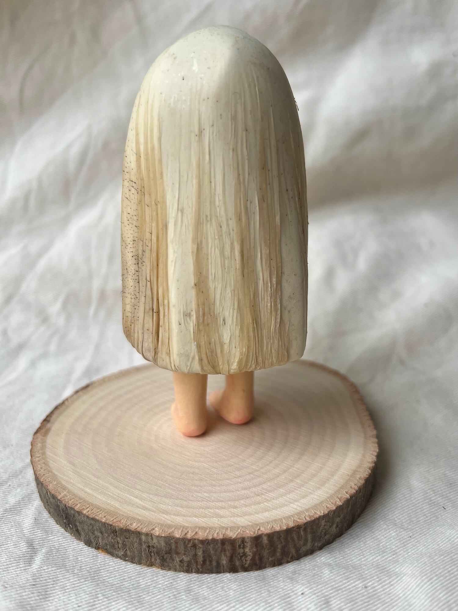 佐藤の制作したオバケにimocoさんがなめした革で包んでいます。