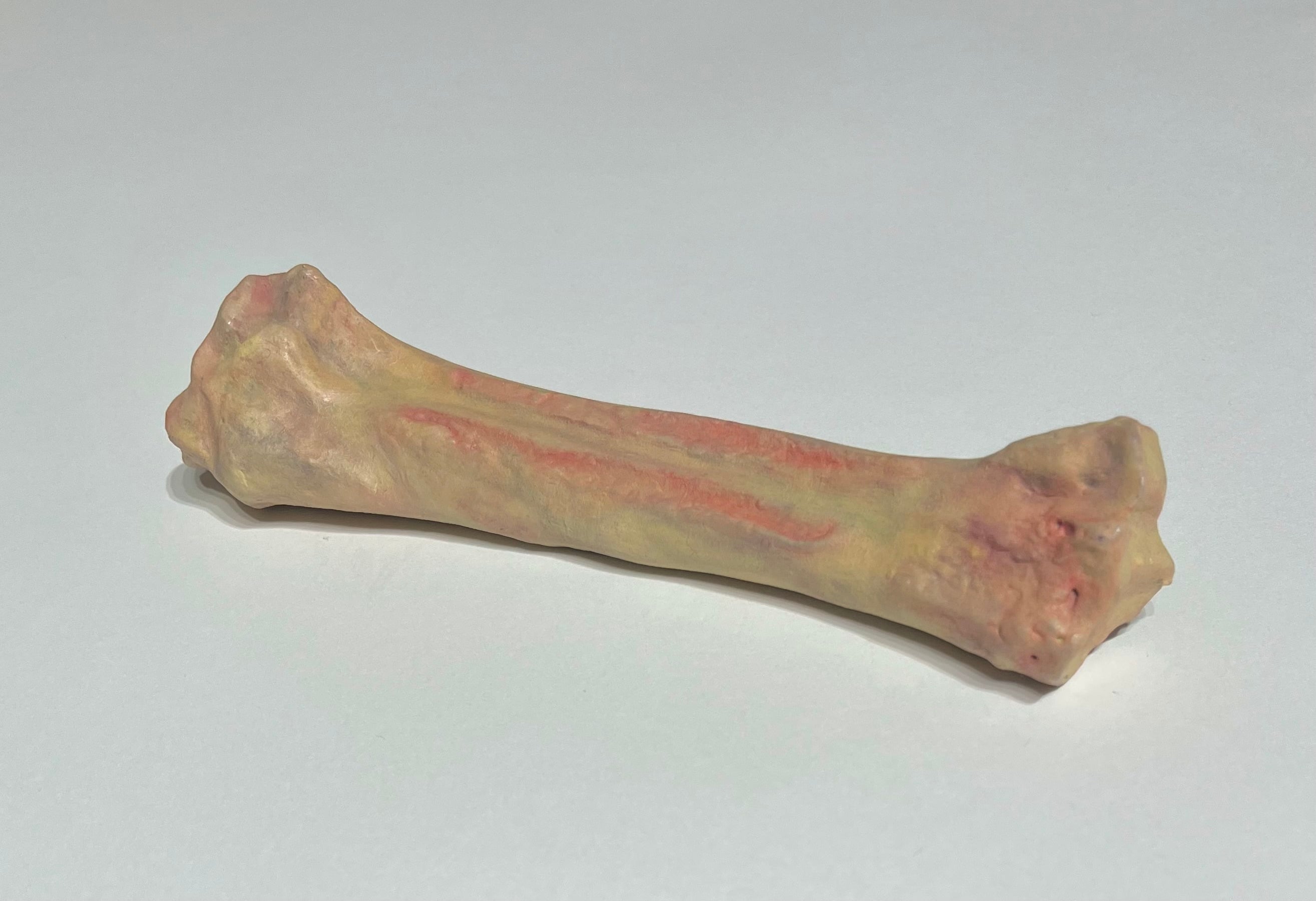 猪の骨を型取り、樹脂で量産し、油彩で肌を描いた作品です。