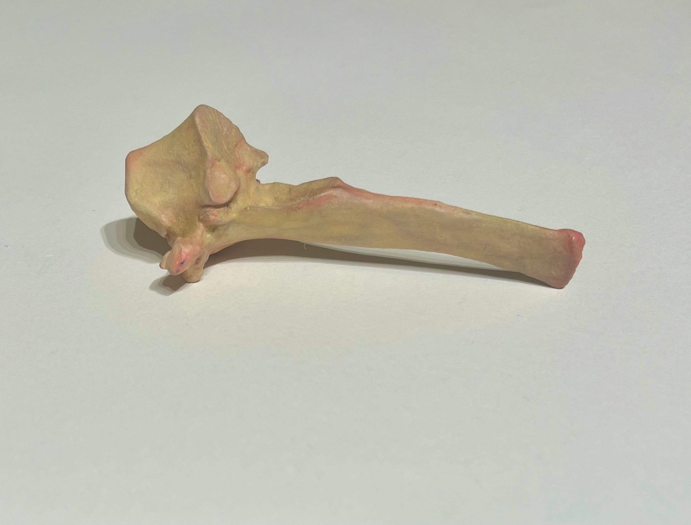 鹿の骨を型取り、樹脂で量産し、油彩で肌を描いた作品です。
